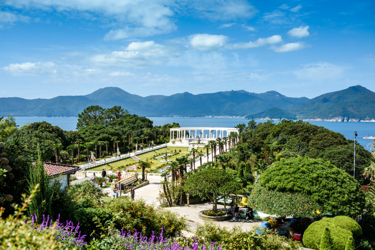거제 근처의 작은 섬에 위치한 다양한 이국적인 식물과 꽃으로 이루어진 그림 같은 식물원입니다.