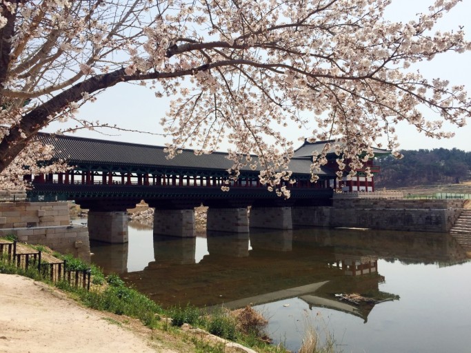 벚꽃과 월정교가 한 장면에 담기면 예쁘답니다.