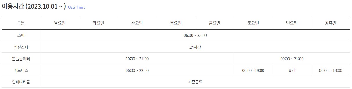 찜질방, 사우나. 인피티니풀, 휘트니스 이용할 수 있어요.