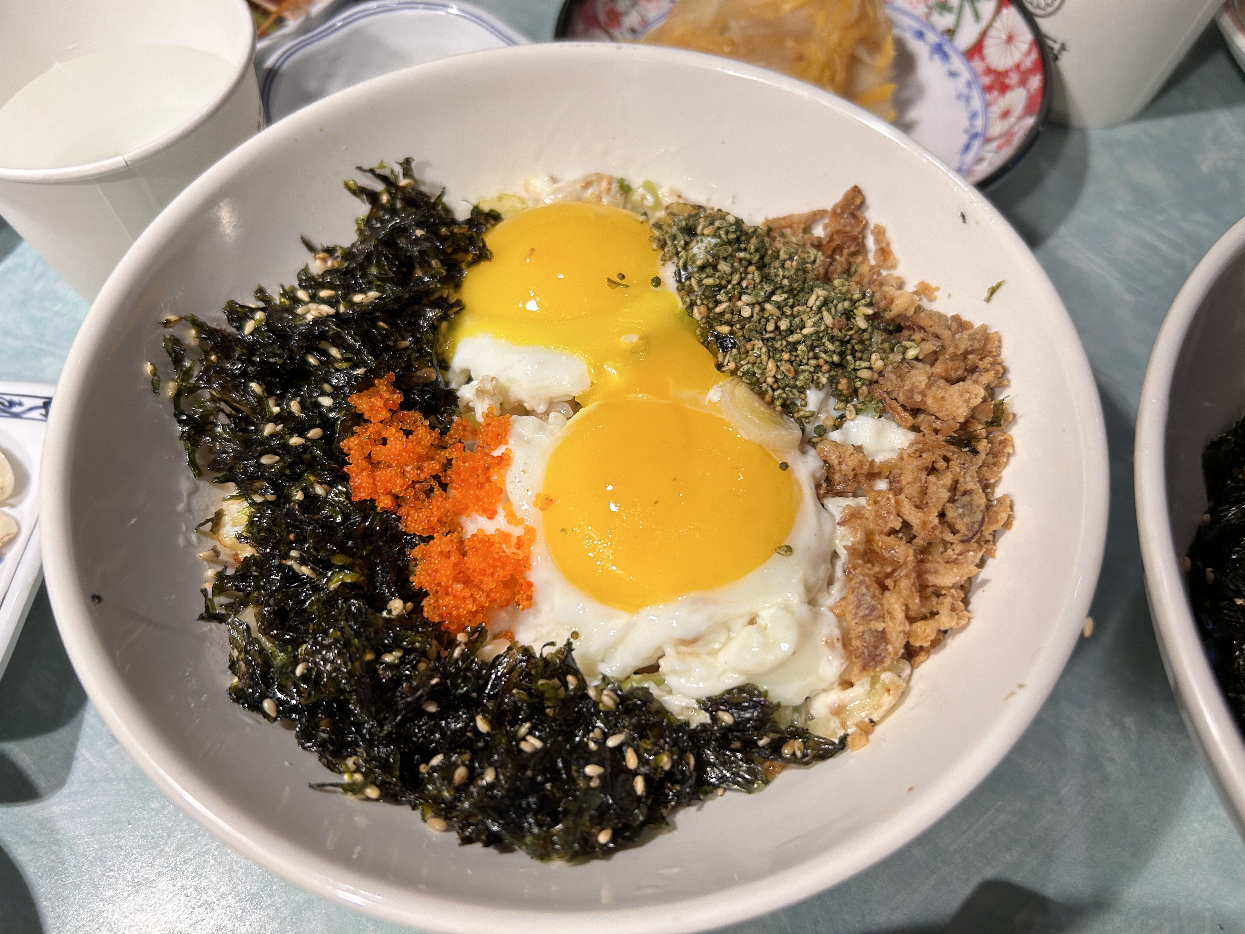 목살부터 시작해서 간장계란밥, 비빔막국수, 껍데기 등