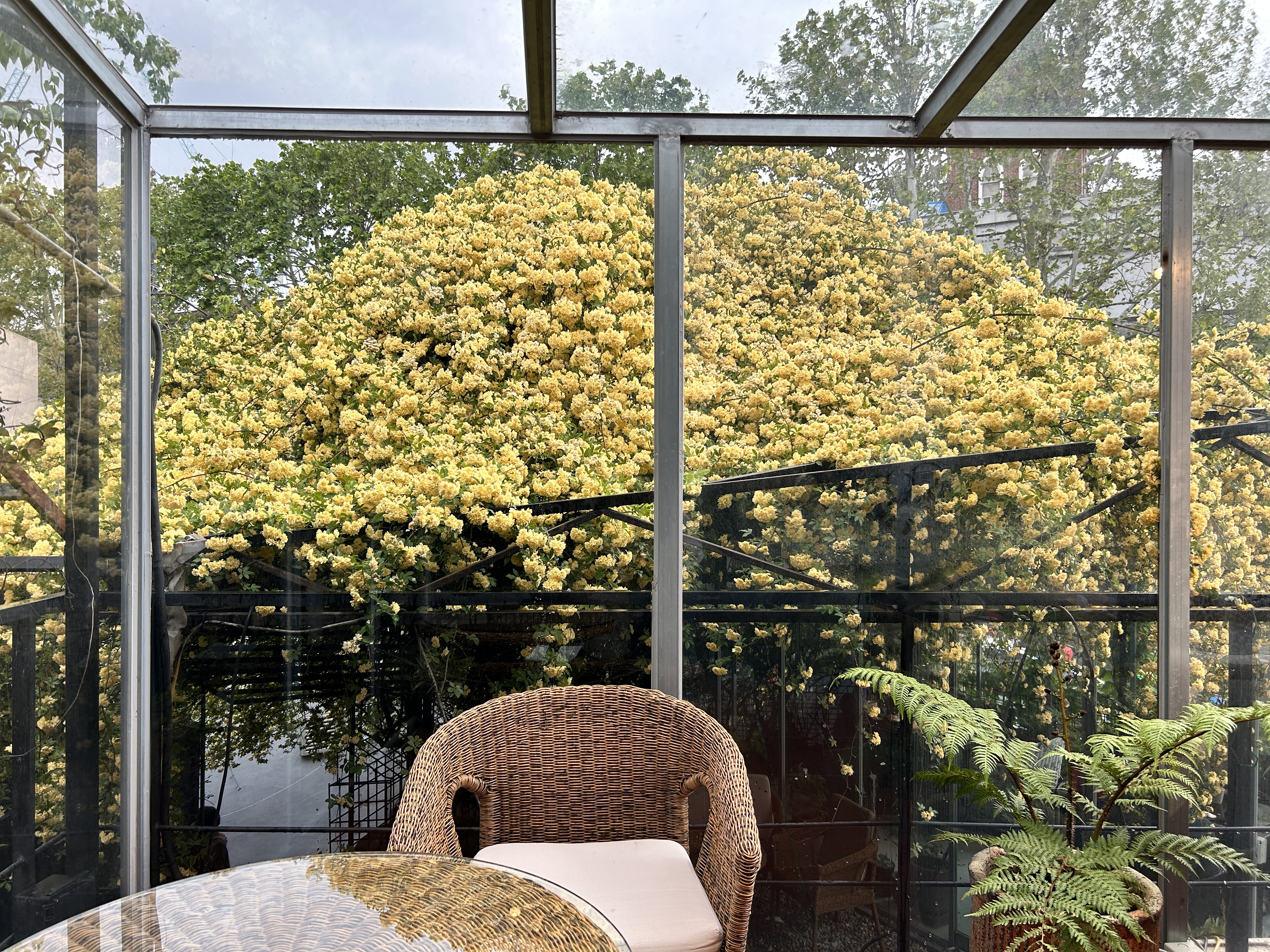 4~5월에 노란 목향장미가 만개하는 카페입니다.