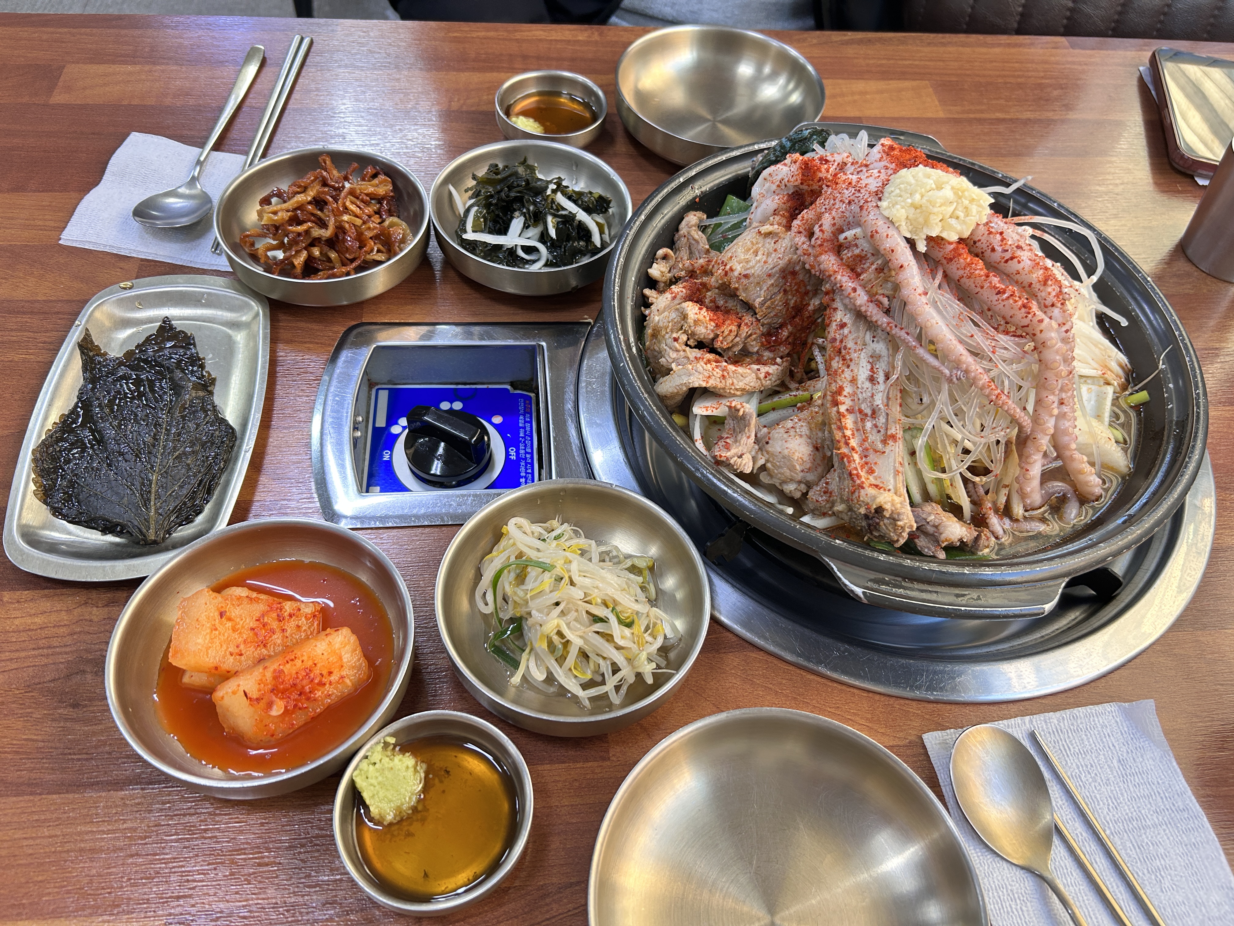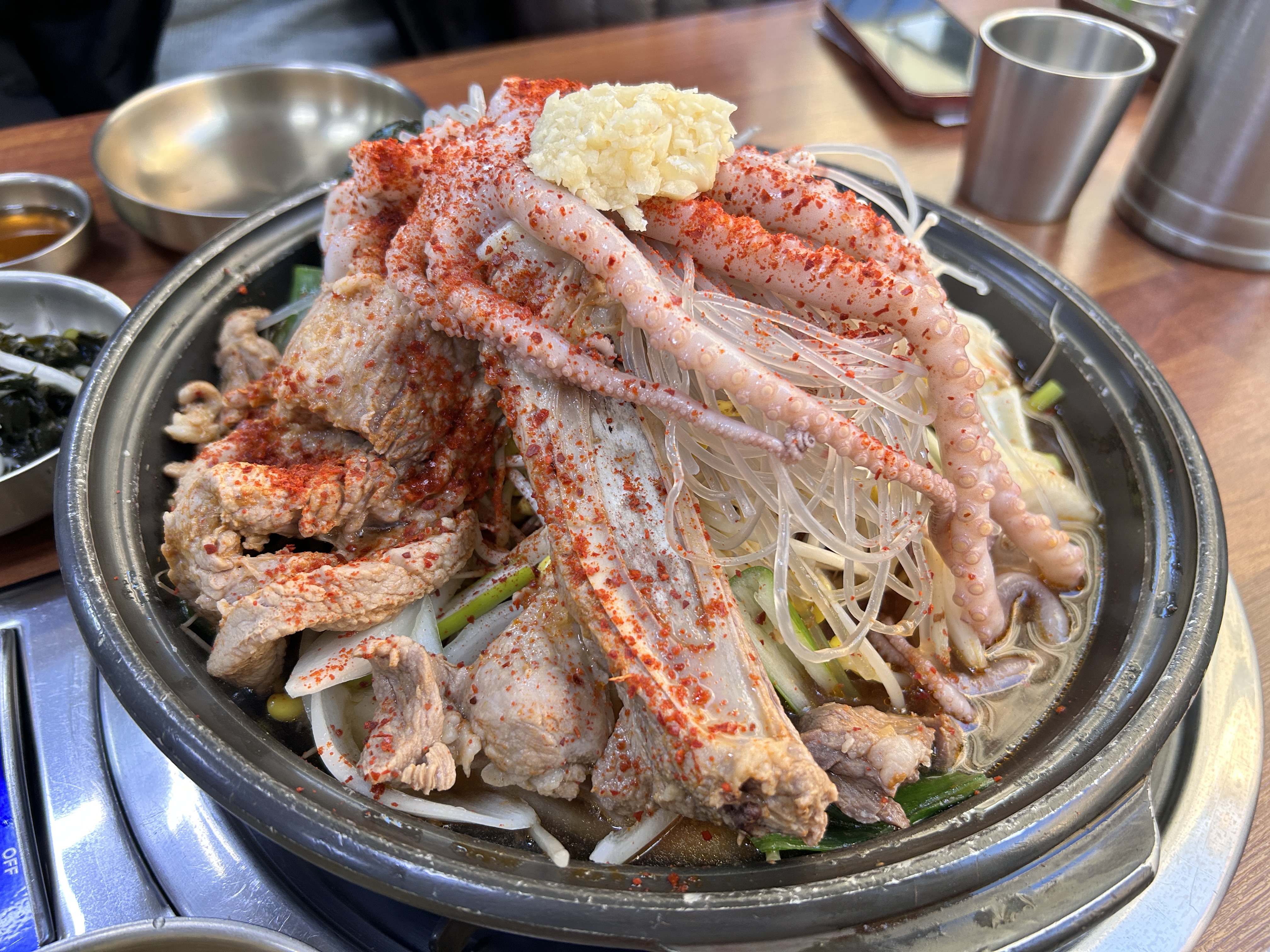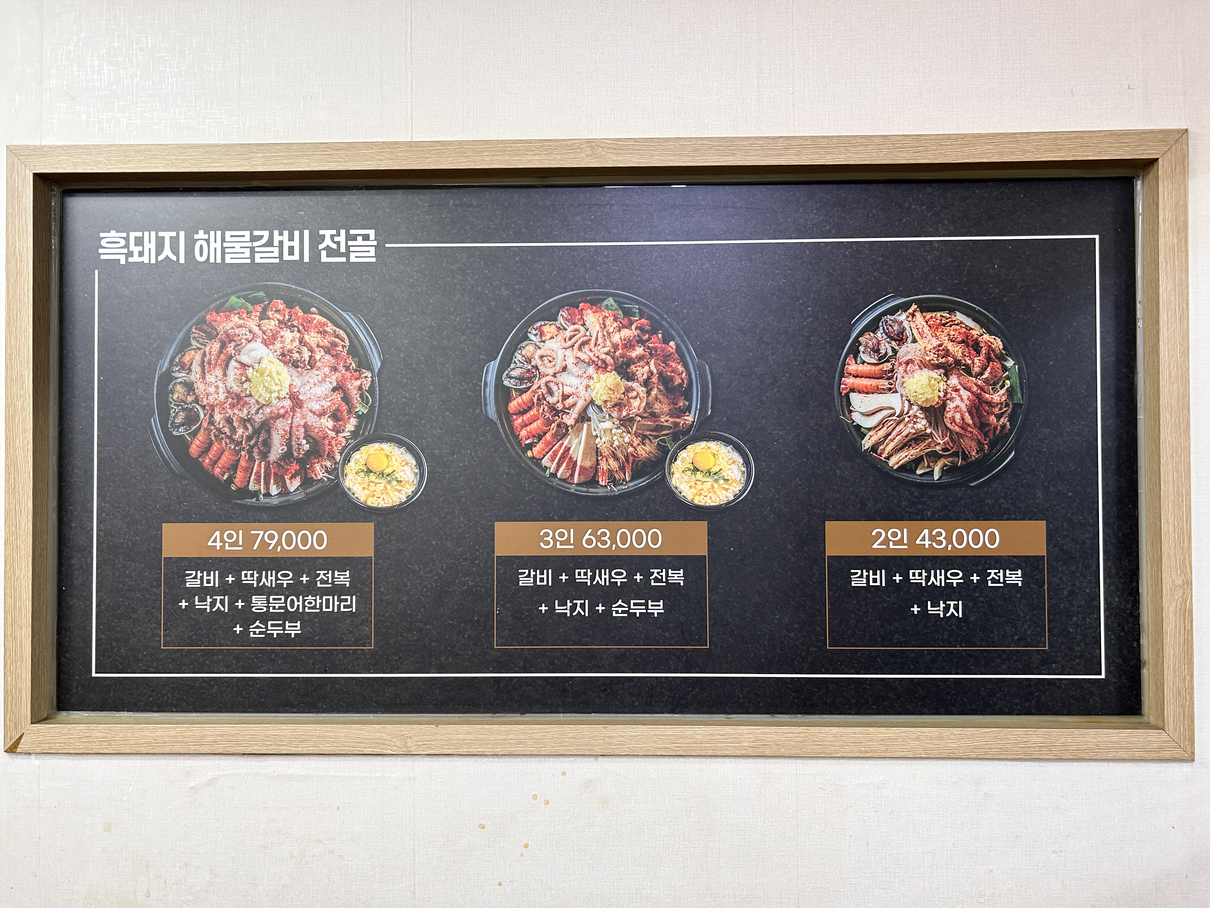 전골에 흑돼지, 낙지, 전복, 딱새우가 가득가득 들어서