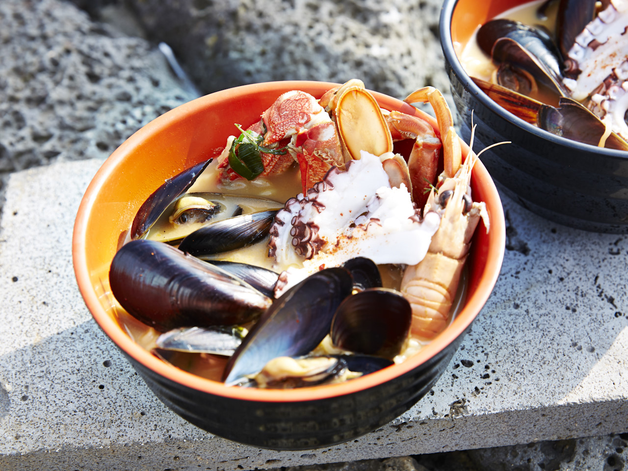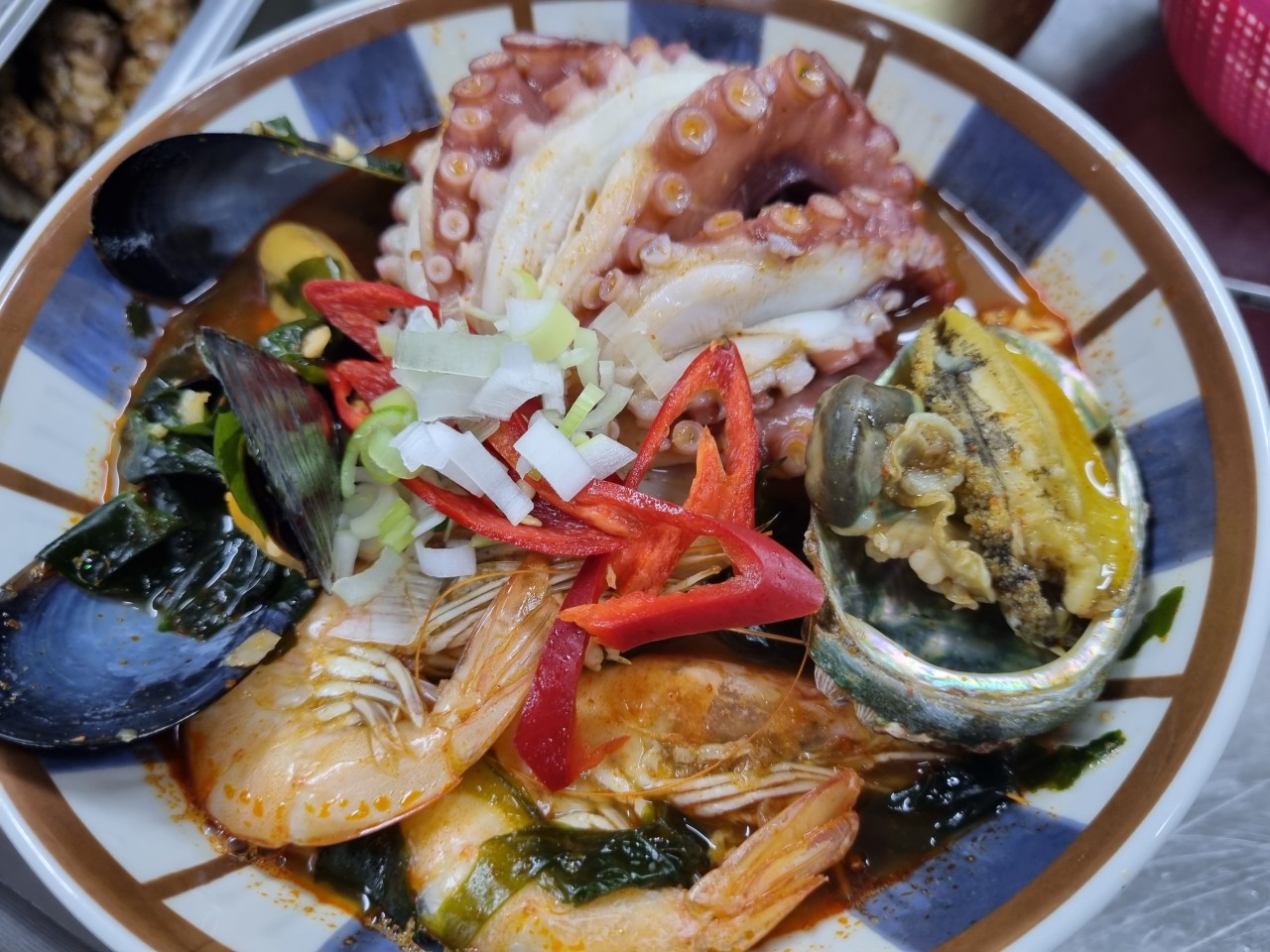바닷가에서 직접 공수해온 해물 가득 들어있는 라면,